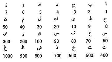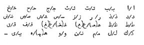 520. The ordinary Arabic alphabet consists of the following 28 letters – like the number of the mansions of the moon, and admirably suited to be employed as numerals up to one thousand – which write from right to left (with semetic sequence):
